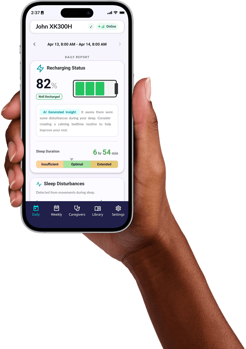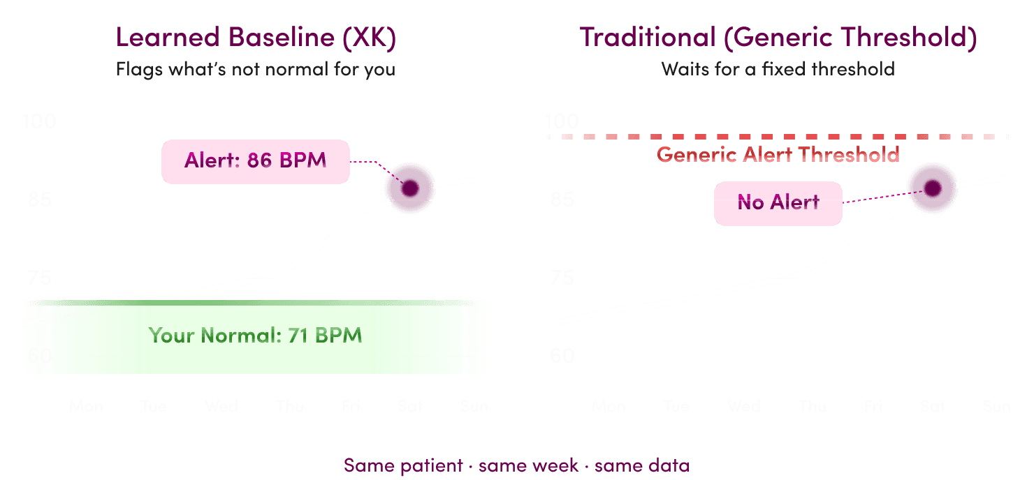Changes in your breathing and heart rate patterns can show up days before you feel anything. That's what XK sensor watches for, every night.
