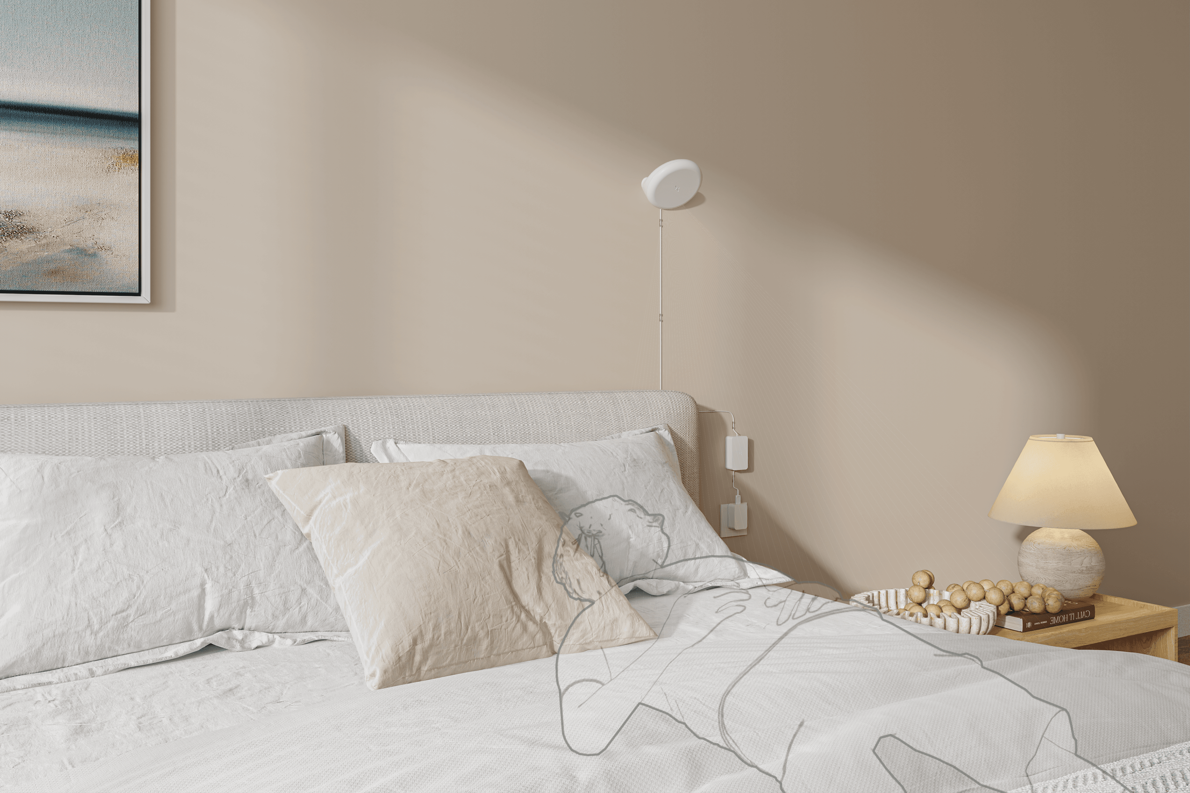 Place Essence on a nightstand or mount it on the wall, plug it in, and it is ready. The whole process takes just a few minutes.