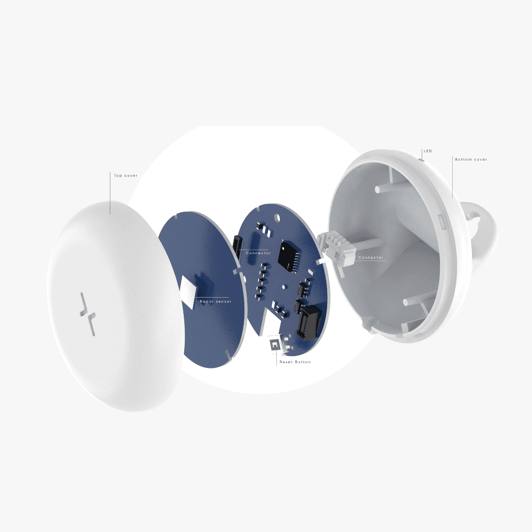 Uses 60 GHz pulse coherent radar to track your heart rate and breathing while you sleep. No patches, no wristbands, no overnight charging.
